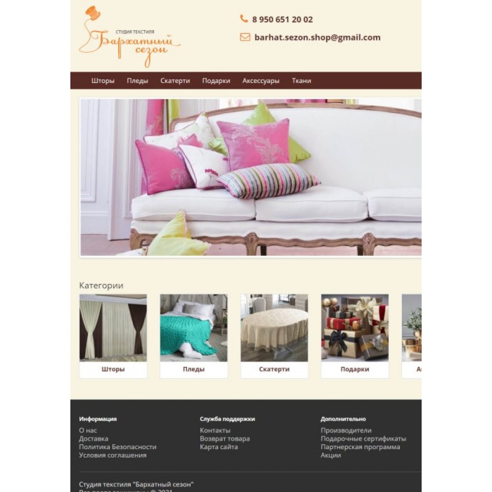Интернет-магазин студии текстиля "Бархатный сезон" от веб-студии Максвебсайт г. Первоуральск