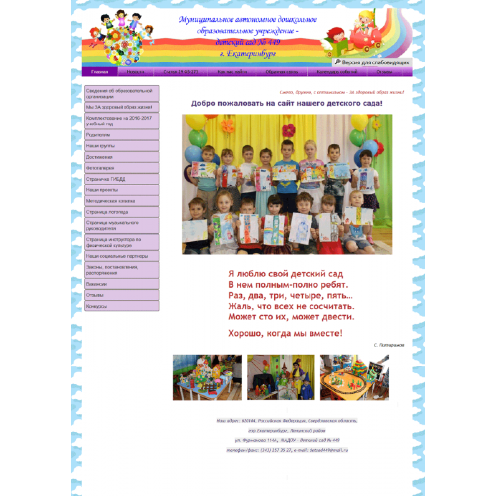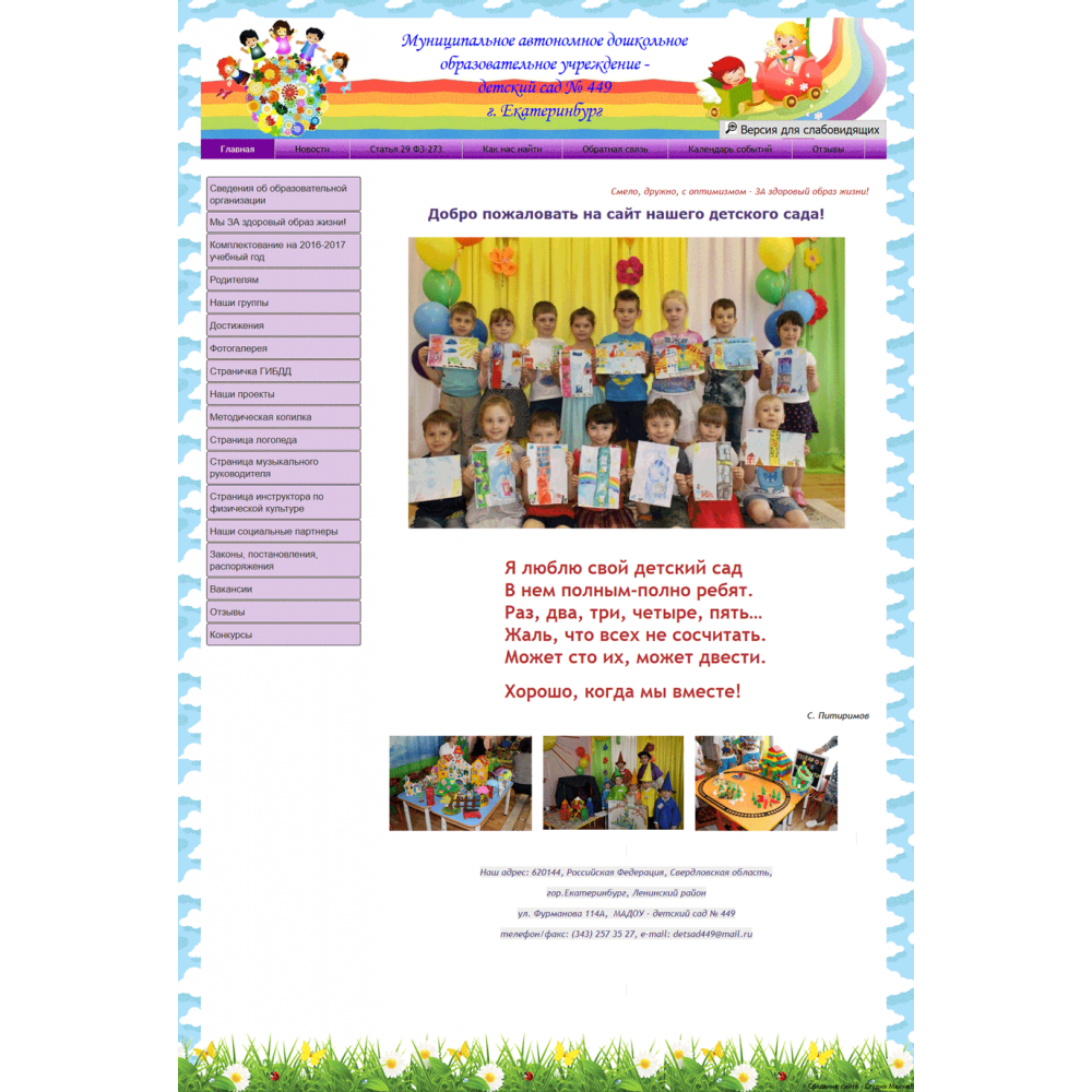 Сайт муниципального детского сада г.Екатеринбург от веб-студии Максвебсайт г. Первоуральск