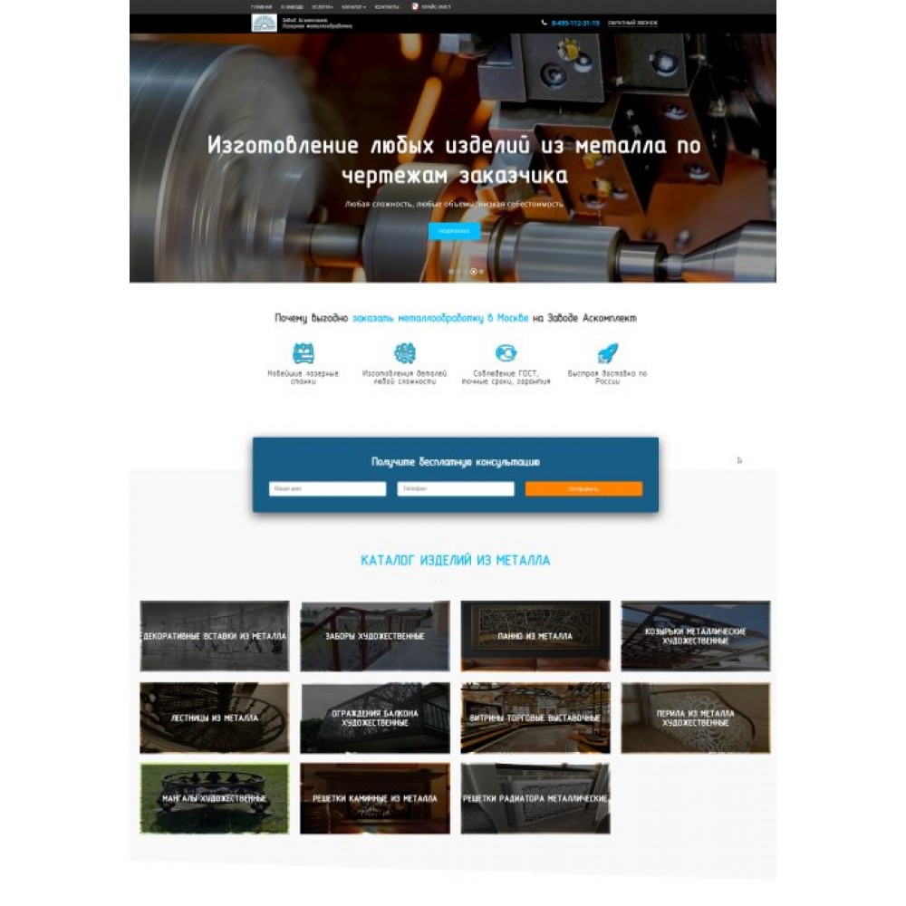 Сайт завода лазерной резки от веб-студии Максвебсайт г. Первоуральск